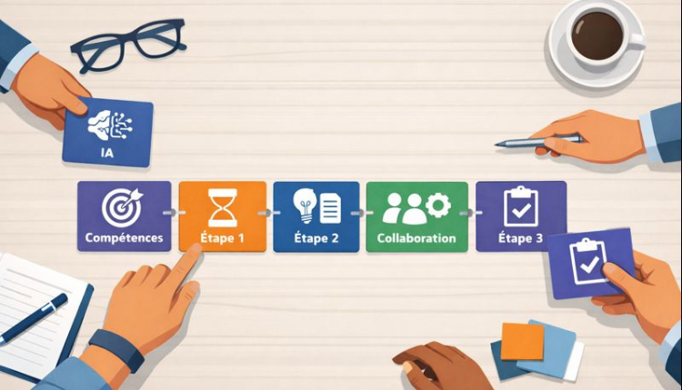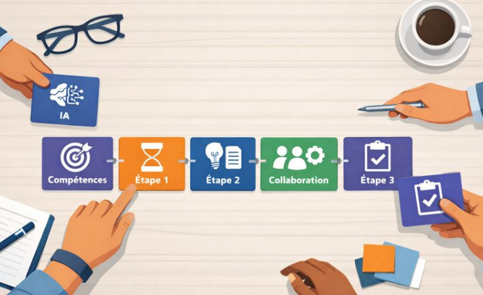 Le jeu se déroule en deux temps. Le premier consiste à poser le contexte du scénario à l’aide d’un plateau et de cartes de cadrage : discipline ou interdisciplinarité, compétences travaillées, modalités pédagogiques, cadre d’usage de l’IA. « Le second temps consiste à construire le scénario sur une ligne de temps, en enchaînant des activités successives. Chacune d’entre elles est définie par des cartes précisant le type d’IA, les outils, les compétences et les modalités de travail. » Par ailleurs, la solution permet de penser des usages de l’IA sans nécessairement être connecté à une IA. « Un usage débranché peut consister, par exemple, à analyser des prompts en classe. Cela rend l’outil pertinent dans des contextes où l’usage de l’IA est interdit ou limité, par exemple dans le primaire », indique-t-il.
